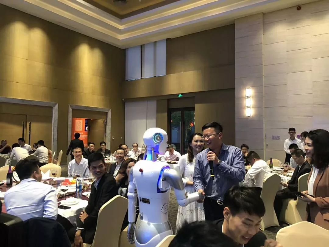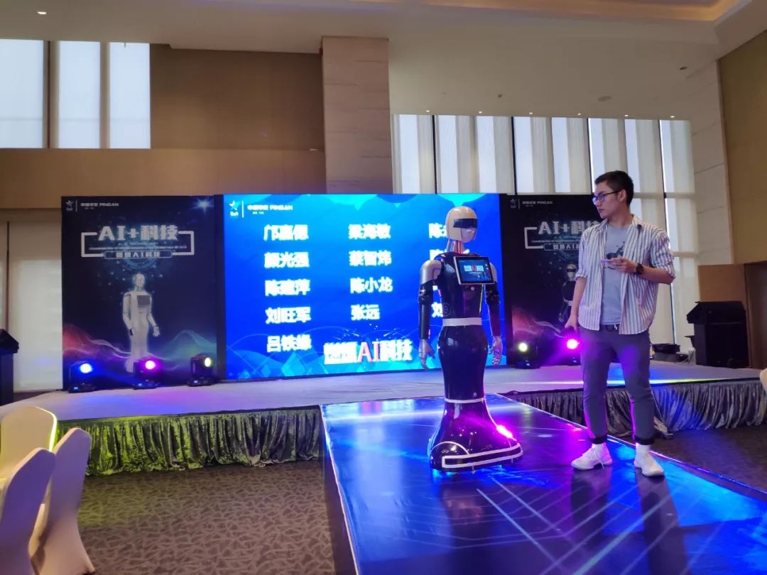 圖為澳博服務(wù)機器人藍豆在臺上頒獎
