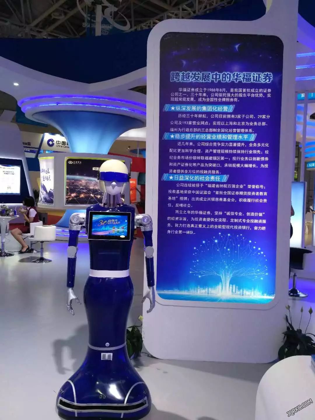 圖為澳博服務機器人藍豆在銀行講解證券