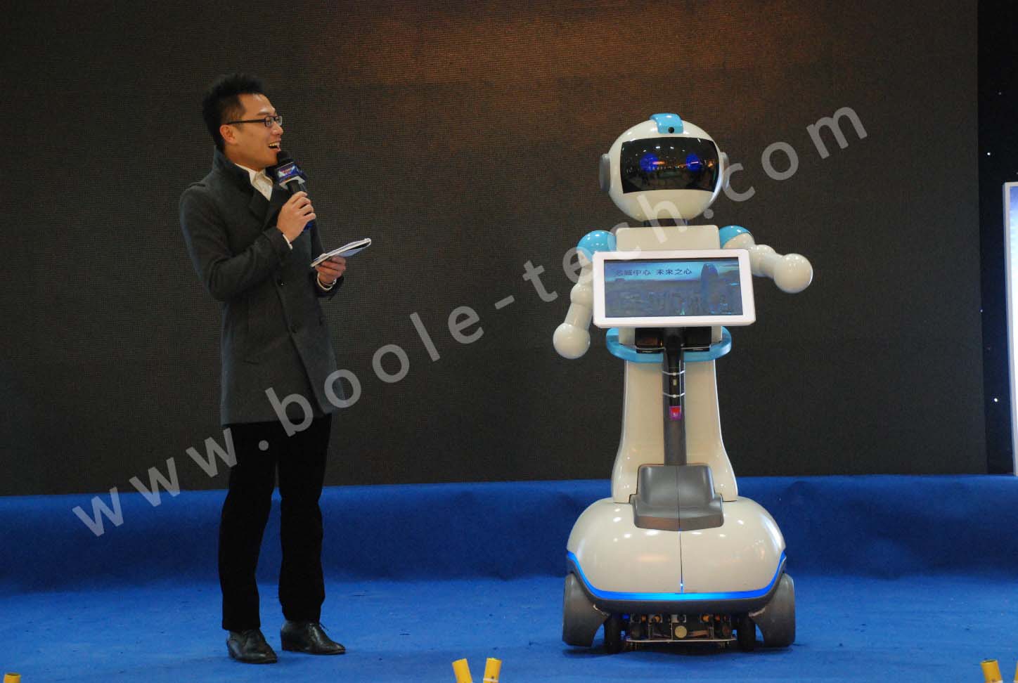 主要功能:語(yǔ)音播報(bào)、語(yǔ)音講解、語(yǔ)音交互。可結(jié)合實(shí)際需要輸入需要播報(bào)、講解、交互的各種專業(yè)信息,眼睛和嘴部由LED燈組成,說(shuō)話時(shí)LED等會(huì)亮亮起,配合語(yǔ)音內(nèi)容做出各種表情,可愛活潑,惹人喜愛,胸前液晶顯示屏?xí)峁┎?bào)講解的文字內(nèi)容。 | |||