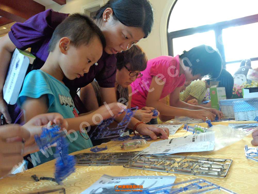 家長和孩子們一起親手制作機器人!