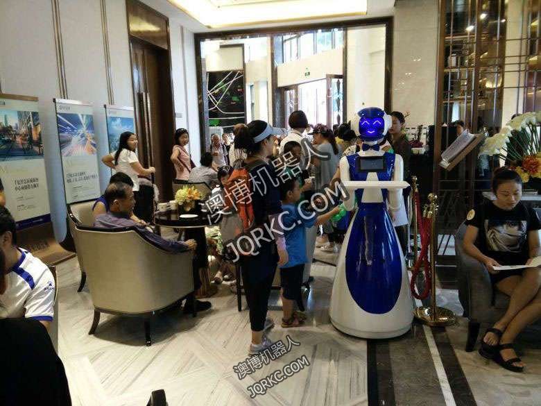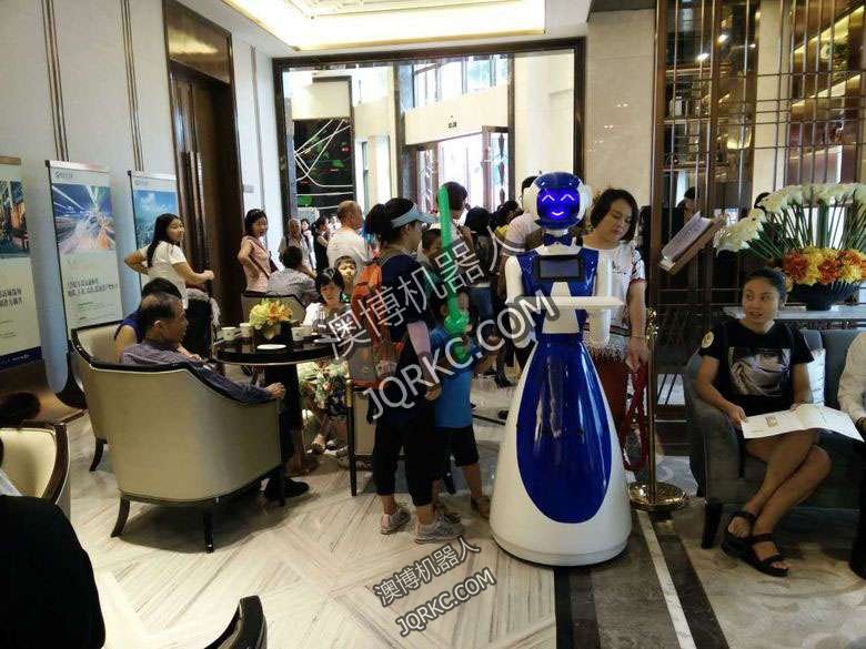 餐廳營銷機器人酒店送水機器人商業服務機器人正在為大家服務機器人服務員在樓盤營銷中心工作機器人服務端送茶水